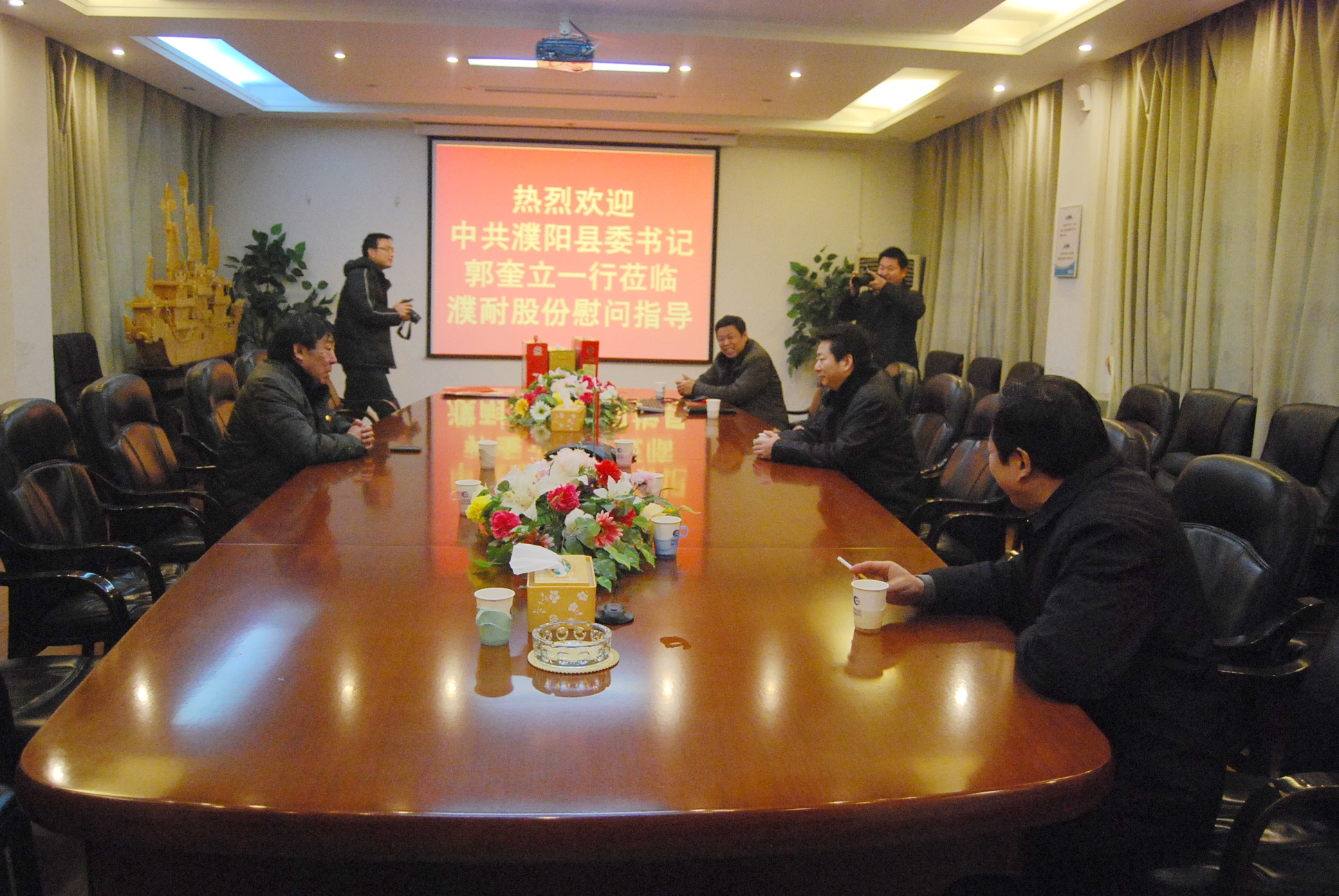 2013年2月1日,值此蛇年新春來臨之際,濮陽縣縣委書記郭奎立率政府有關(guān)部門來我公司慰問指導工作,提前給我公司員工拜年,并給我公司帶來了慰問品和慰問信,我公司黨委書記郭志彥接待郭書記一行并予以匯報。